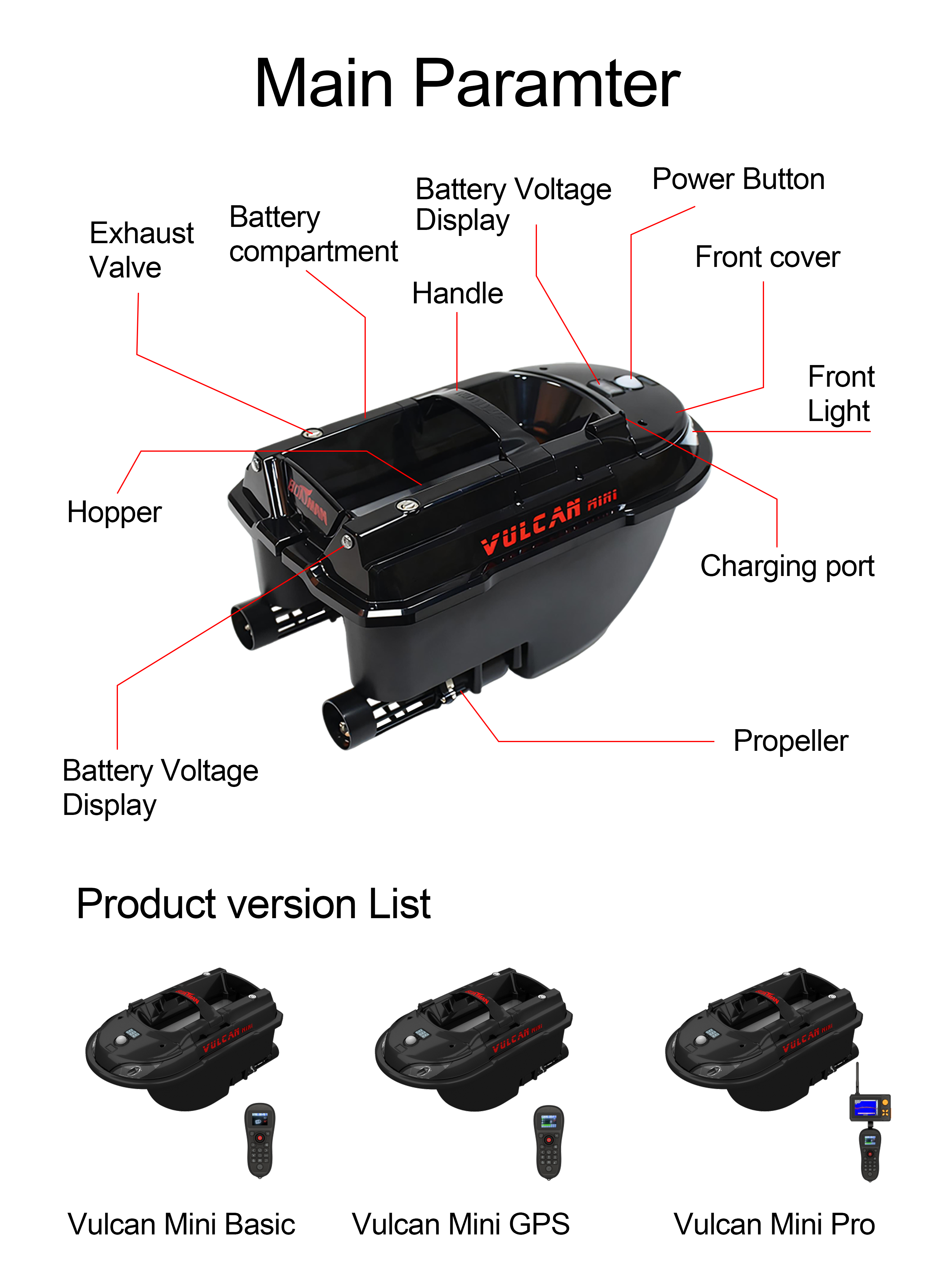 he boat offers three speed settings, giving anglers the flexibility to adjust according to their needs. Available in three striking colours – Carbon, Black, or Vulcan Camouflage – the Boatman Vulcan is sold in four versions: Basic, GPS, SONAR, and Pro. The remote control is ergonomically designed for one-handed operation, featuring large, illuminated buttons for ease of use, and a display that shows the battery levels of both the boat and the remote.